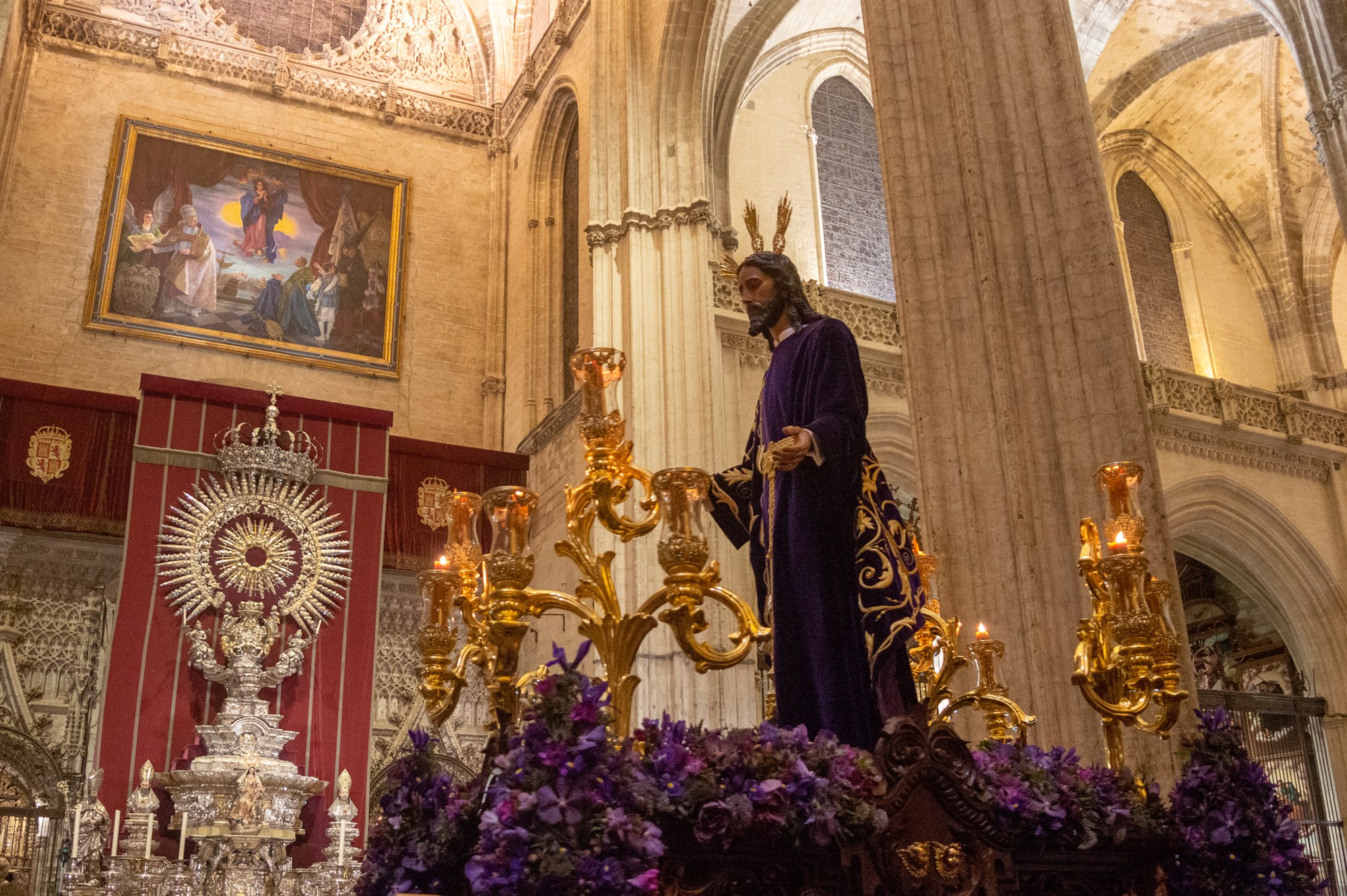 Ese mismo año, el Lunes Santo amaneció con una imagen insólita y bella: en la nave central se pudieron contemplar por primera vez dos hermandades con sus respectivos Titulares: Jesús de la Redención en su paso de misterio, el Señor de las Penas y María, en sus advocaciones del Rocío y de Gracia y Esperanza. Cuatro pasos que llenaron de gloria nuestro bendito templo.