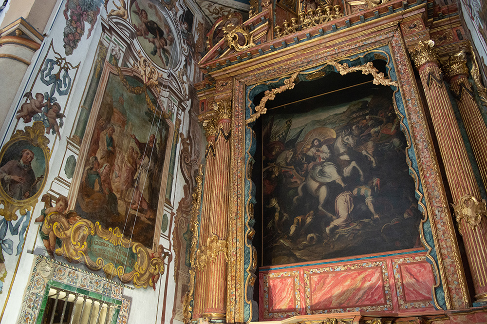 Continuando por esta nave, se encuentra un retablo del siglo XVIII dedicado a San José, cuyo ático vuelve a mostrar una representación de Santiago Matamoros. Junto a él hay una imagen (también del XVIII) de San Antonio; y al otro lado, un cuadro de la segunda mitad del XVII con una alegoría eucarística.