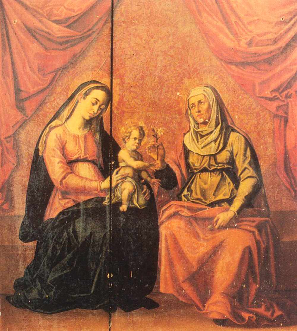 El segundo cuerpo del retablo presenta representaciones pictóricas de Francisco Pacheco: una imagen de la Virgen con Santa Ana y el Niño, acompañada por tablas laterales dedicadas a San José y San Juan Bautista, recientemente restauradas. El ático lo completa una pintura de la Anunciación y tondos con escudos. El conjunto tuvo un coste de 300 ducados; el retablo se realizó en madera de borne y pino de Segura, y las esculturas en cedro de La Habana.