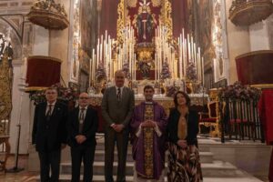 Durante estos días de Quinario numerosas corporaciones, venidas desde diferentes puntos de Sevilla y provincia, nos acompañaron en la celebración, agradeciendo su asistencia en los cultos, especialmente a nuestra Hermandad hermana de la Exaltación, que participó corporativamente en la Procesión Eucarística.